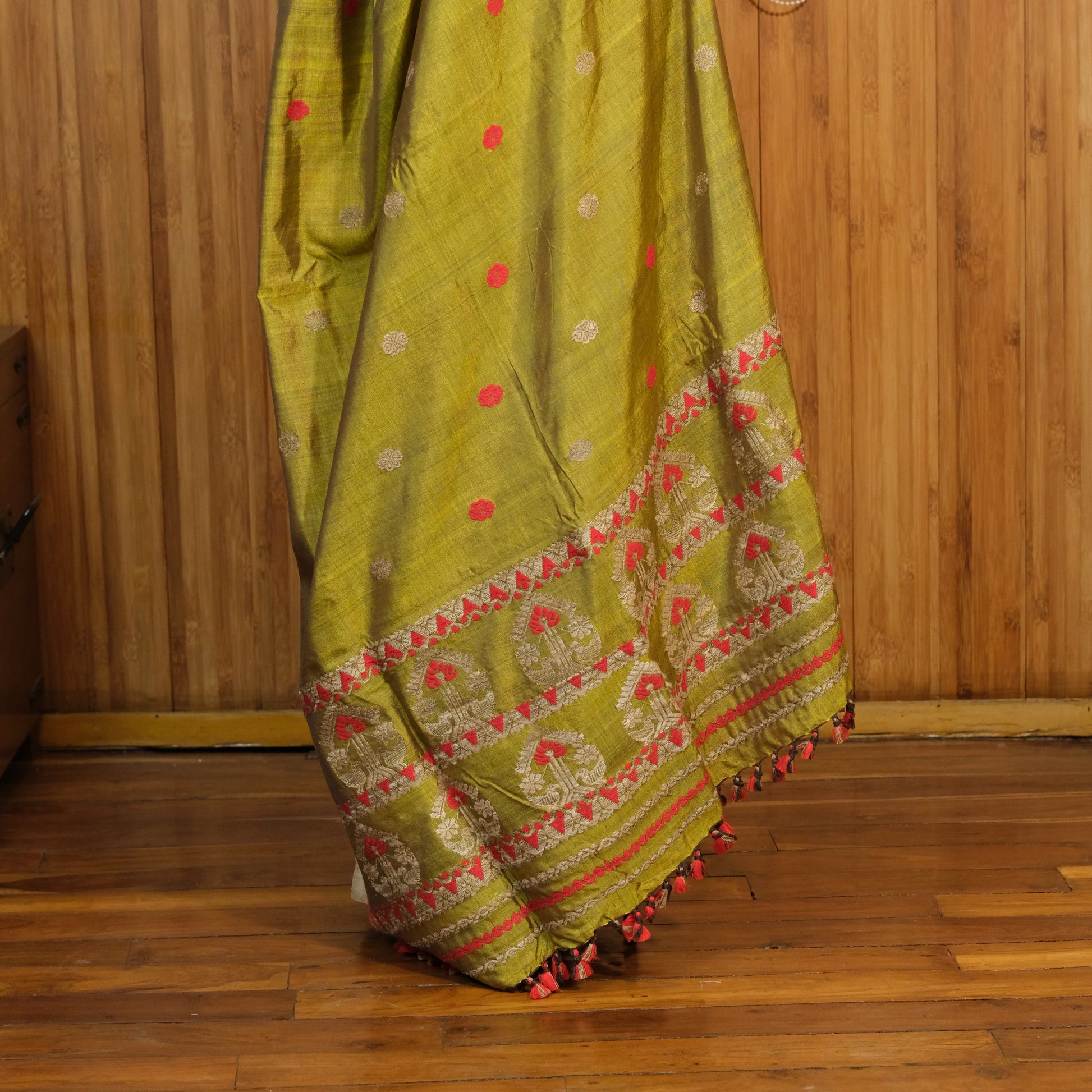 This Single Sador blends luxurious Mulberry silk (Paat) with soft cotton, delivering a refined textile that balances elegance and comfort. The Mulberry silk provides a rich sheen and smooth texture, while the cotton base ensures breathability and durability. Crafted with expert precision, this sador is ideal for sophisticated attire that honors tradition with a contemporary touch.