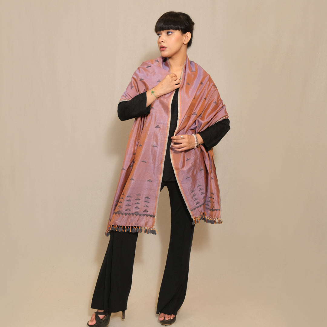 This stole combines the luxurious softness of mulberry silk with the breathable comfort of cotton, offering a refined accessory that enhances any outfit. Its natural fibers ensure durability and a smooth texture, making it ideal for both casual and formal wear. Expertly crafted, this stole provides a lightweight yet elegant drape, perfect for adding subtle sophistication to your wardrobe.