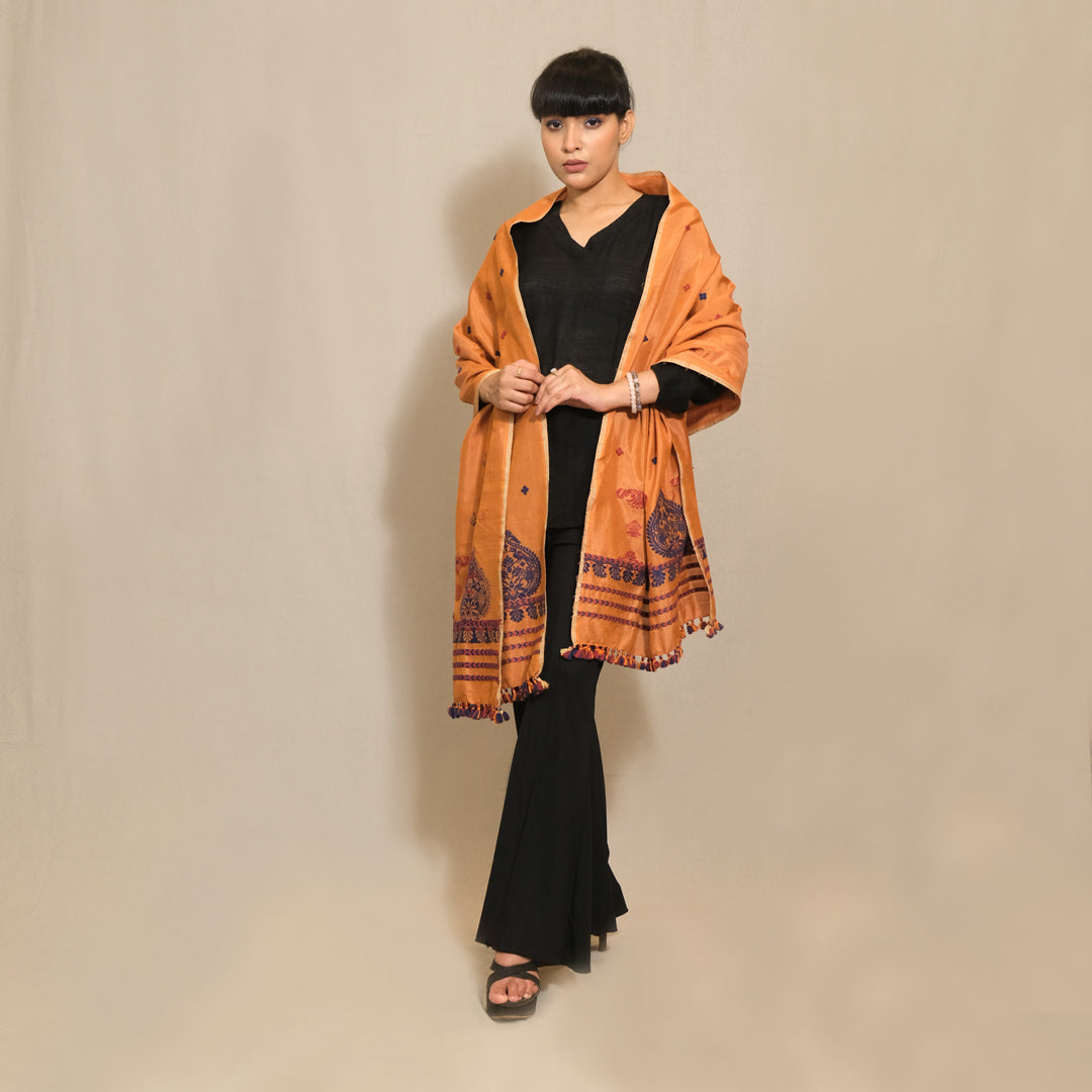 This stole combines the luxurious softness of Mulberry silk with the breathable comfort of cotton, offering a refined accessory that enhances any outfit. Its natural fibers ensure durability and a smooth texture, making it ideal for both casual and formal wear. Expertly crafted, this stole provides lightweight warmth and a subtle sheen, reflecting quality and elegance in every detail.