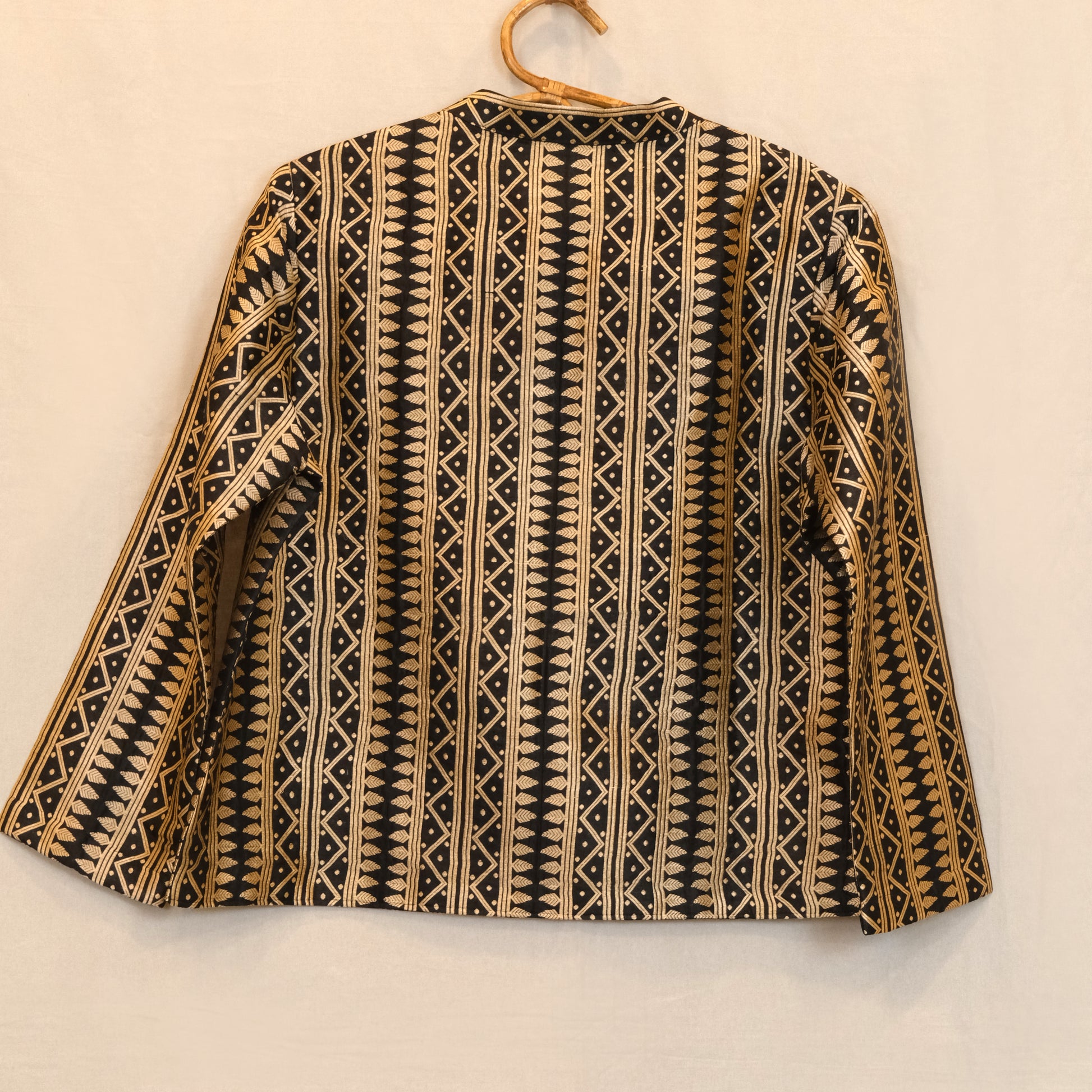 Crafted from a luxurious blend of mulberry and tassar silk, this women's jacket combines refined elegance with natural breathability. Mulberry silk delivers a smooth, lustrous finish and exceptional softness against the skin, while tassar silk adds subtle texture and enhanced durability. The combination creates a sophisticated piece that drapes beautifully while maintaining its shape. Perfect for layering over dresses or pairing with tailored trousers, this jacket transitions seamlessly from professional settings to special occasions. The natural protein fibers regulate temperature effectively, making it suitable for various seasons. An investment in timeless style an